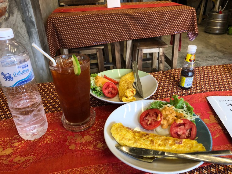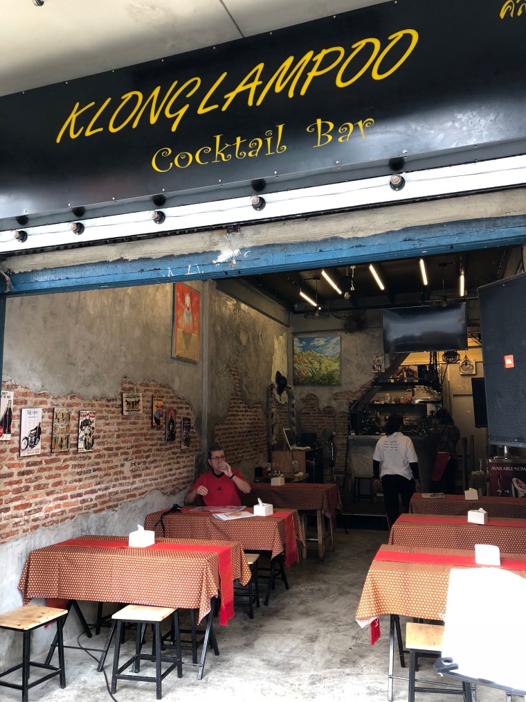 Because we got to bed so late, we didn’t get up until 1030. We had a western style breakfast (omelette and vegetables) at a restaurant, the Klong Lampoo Cocktail Bar (catchy, eh) about a block and a half up the street from the hotel (slowly working our way up to the exotic).