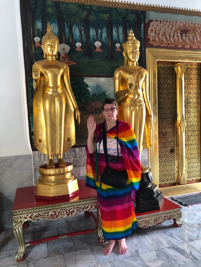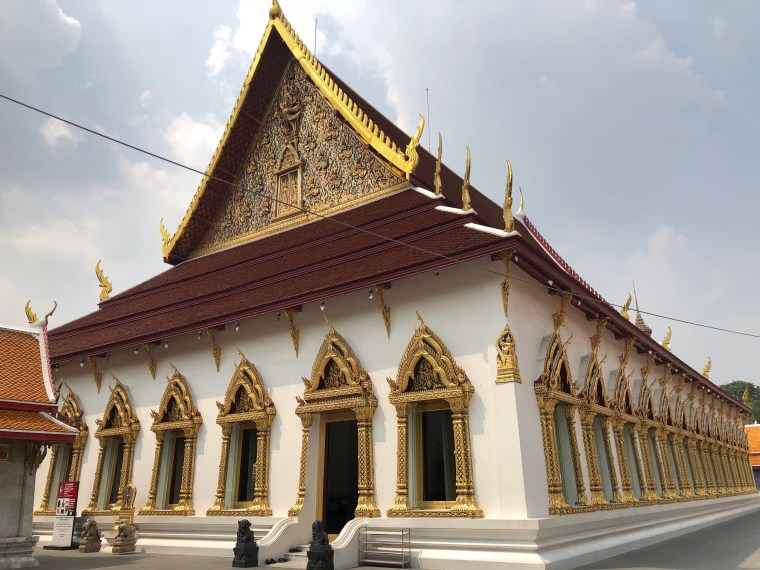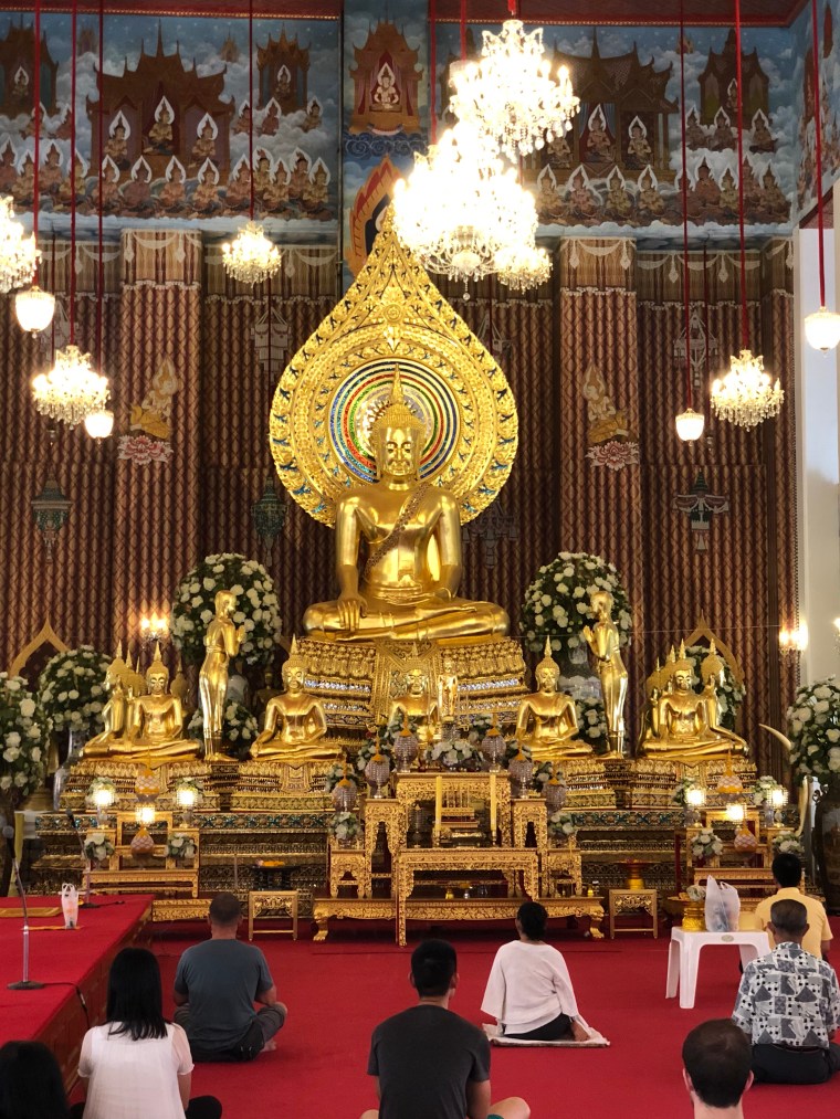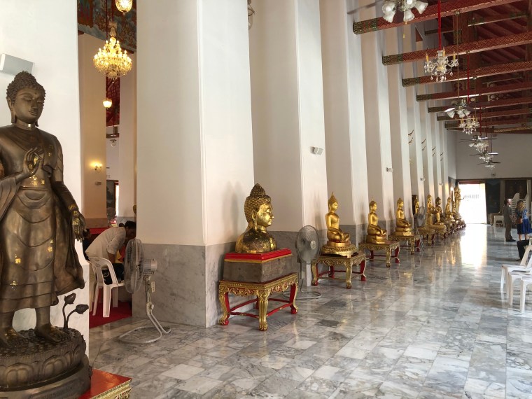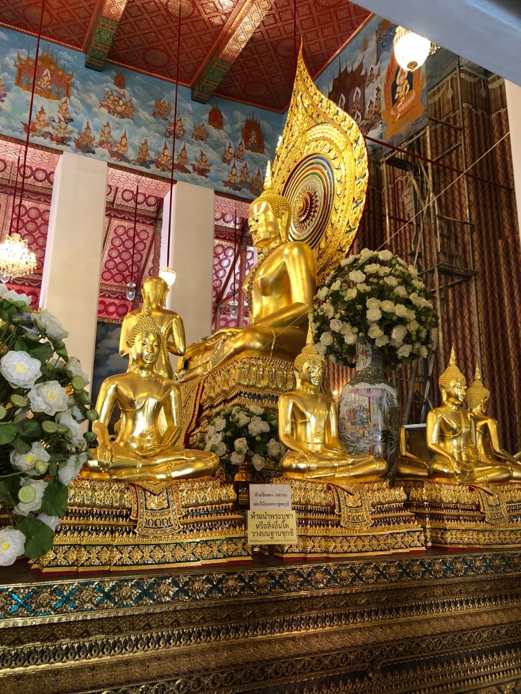 After breakfast we made our way to a large Wat (Tai for Temple), Chana Songkram Ratchaworamahaviharn (OK – All together now!)
