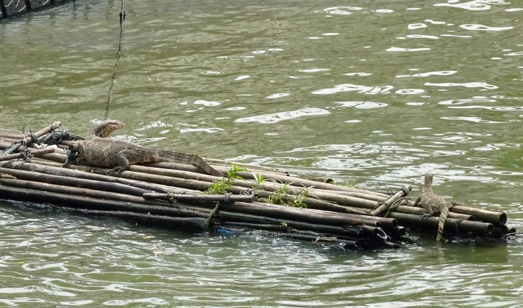 In a waterway running through the market, we spotted about three large lizards. They are wild and all over the place.