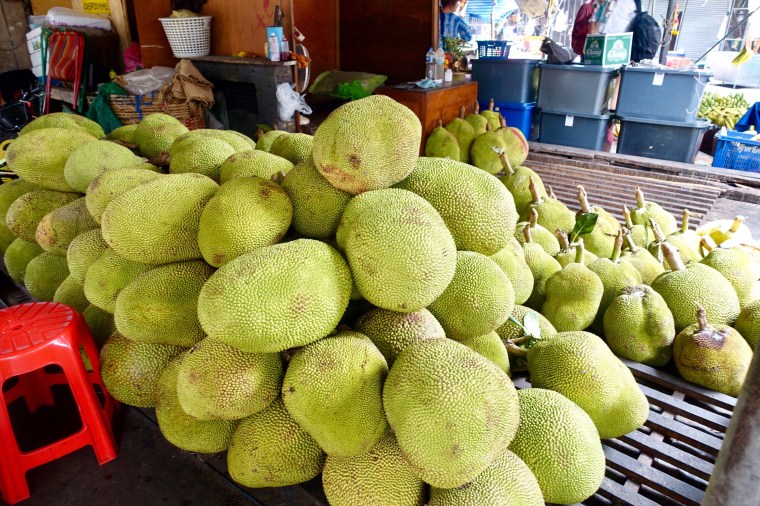 Durian, these guys were HUGE. The size of 2 basketballs. Apparently they are a very stinky fruit and banned from every hotel where we have stayed.