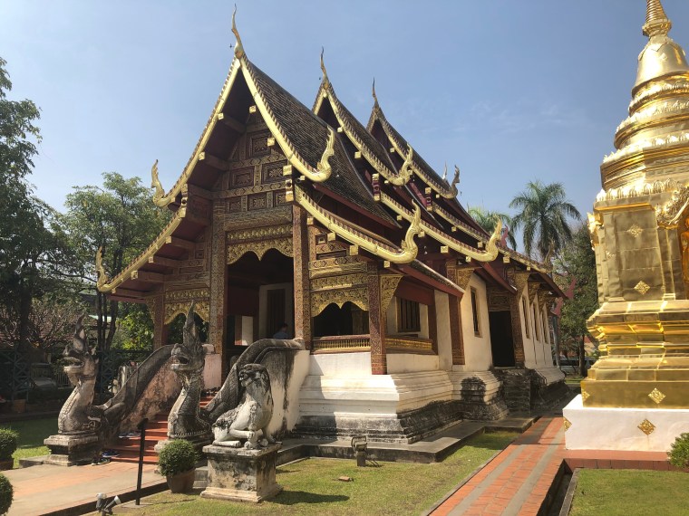 After such a busy day yesterday we thought we would take it easy today. There was a Wat that I wanted to go to and it was on the other side of the moated city. Wat Phra Singh. I have to choose them carefully as Doug will only do so many Wats in each city. It was a few miles away, but we thought we would walk it as it wasn’t too hot and humid yet. We stopped off at our favourite restaurant and had a smoothie and our English breakfast for breakfast.