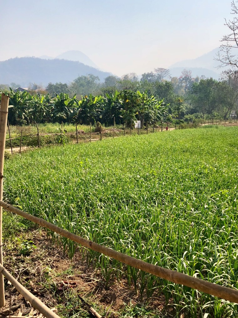 This a field full of garlic growing
