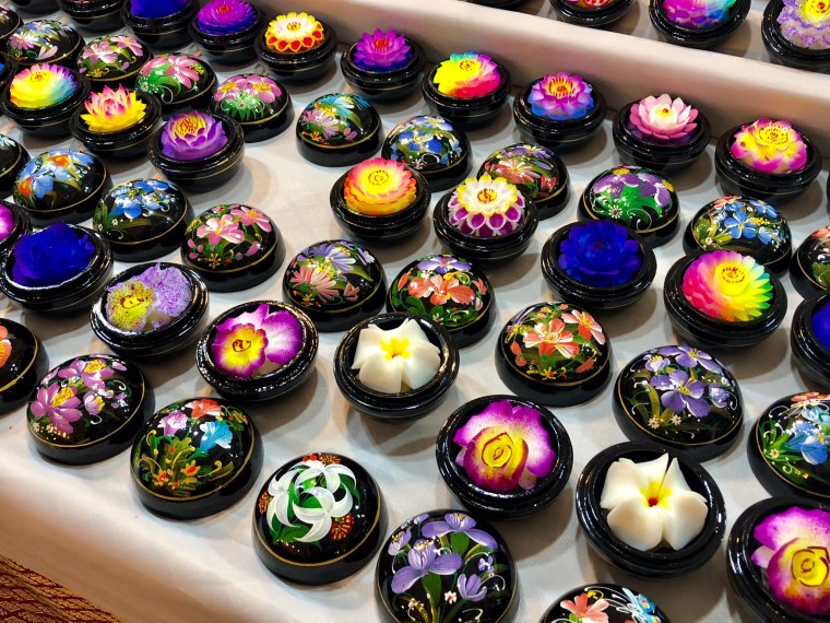 These are bars of soap that have been hand carved. Watched a lady making them one day. They are real artists.