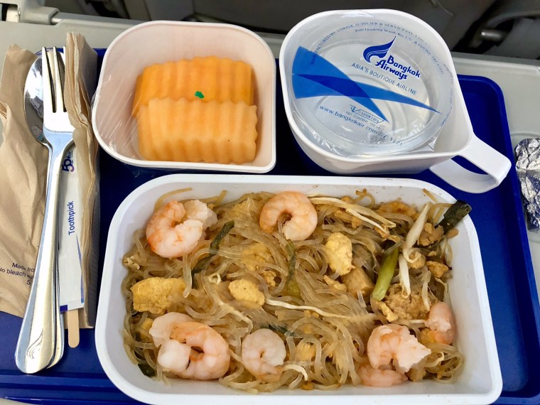 We were flying Bangkok Air and the flight was approx 1 hour. They served a full meal on the plane. We didn’t have it as it was some kind of stinky fish. On the second leg, Bangkok to Phuket which was a little over an hour flight they also served a meal.