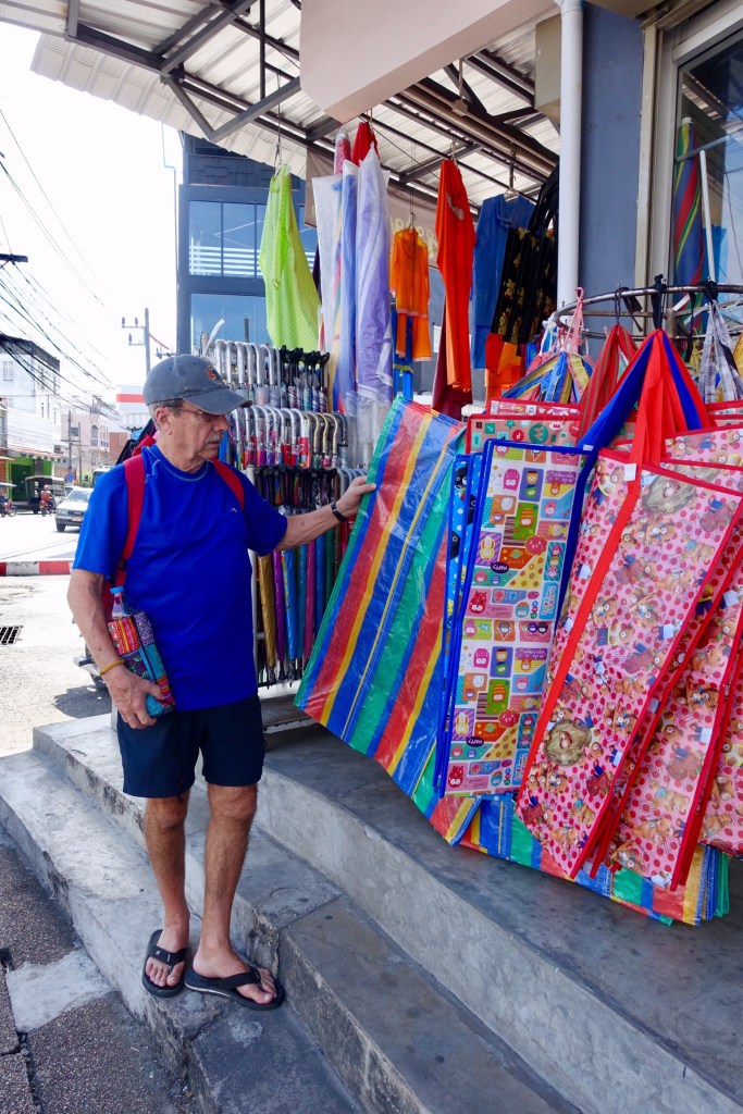 After our rest and cooling down, the place had fans, we continued to wander the streets. If I was still sewing and had lots of space in my luggage it would have been a delight to shop. So many fabric choices and notions. The street we walked down was lined with fabric stores.