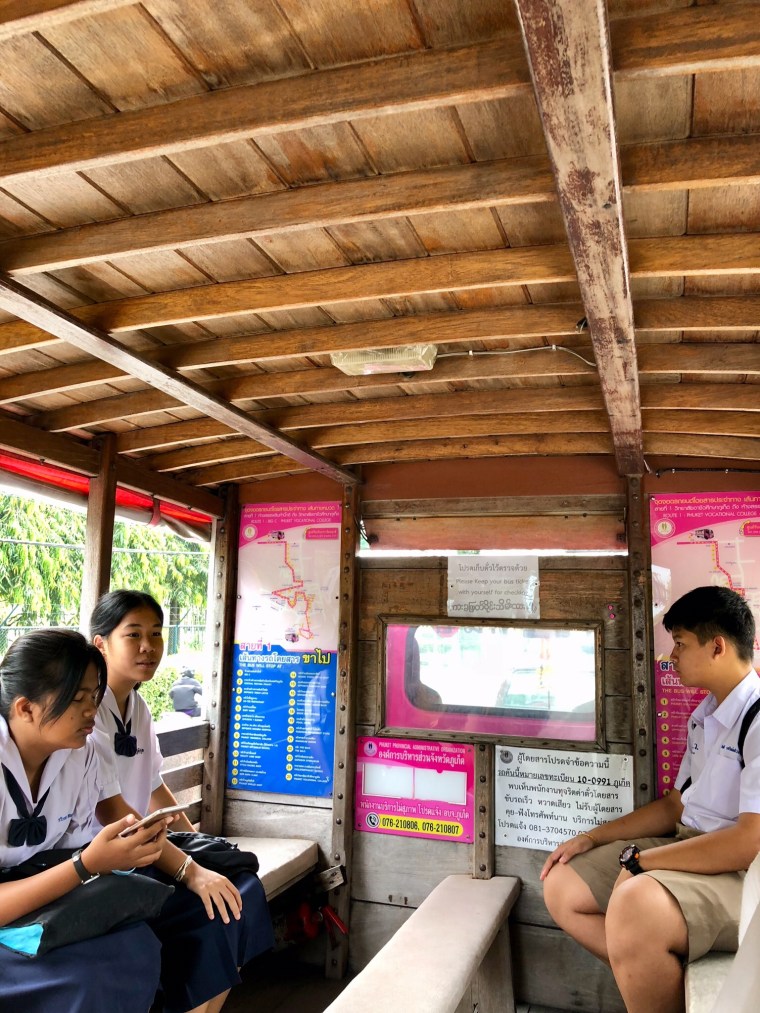 Back on the street in search of that pink bus. Yup the same bus we never found yesterday. We paid more attention as we headed into the old town in search of the bus stop and finally found one a good km from the hotel. Thought we would wait a bit and see if the bus showed up. To our surprise it arrived in a couple of minutes. We climbed aboard, paid our 15 baht each and were on our way to the beaches bus transfer point. We did know where this was as we had found it yesterday.