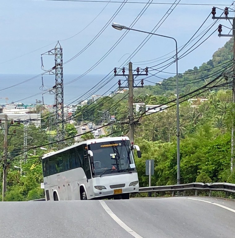 It’s a local bus so takes you all through the back streets. We arrived at the beaches bus stop in about 10 minutes, hopped off the pink bus and went in search of the blue bus to take us to Patong Beach. A couple of men gave us directions to the bus and it was easy to find. We climbed aboard the blue bus. Had to pay again as there are no such things as transfers here. You pay every time you get on a new bus. Well actually some you pay when you get off. Think it depends on the distance you go, but not sure. The road to Patong is very hilly and curvy. The bus really struggled on some of the hills to get up, but we made it. This is not our bus. A very scenic drive though.