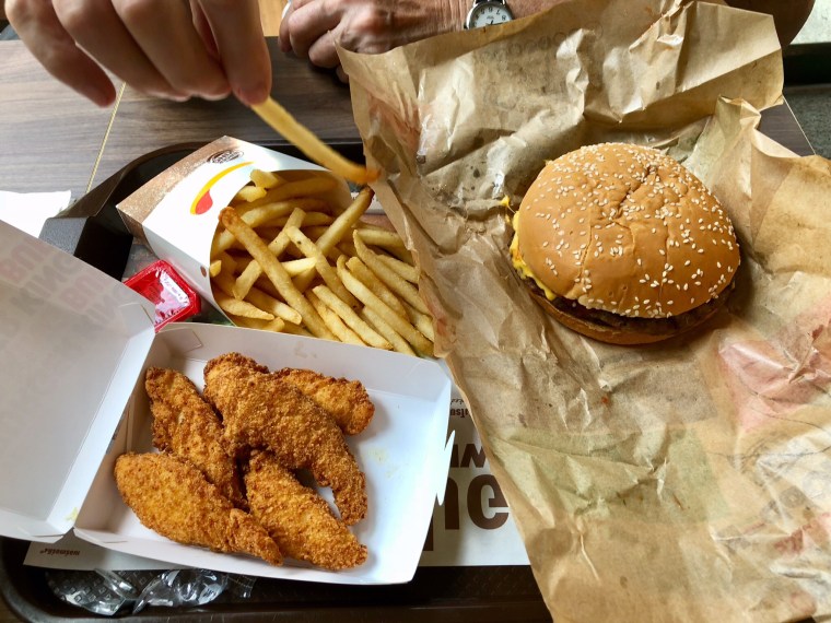 We crossed over from the beach side to the shops side and walked some more. I spied a Burger King and by now it was going up for 1:00 and I was getting hungry again. Maybe I really just wanted some nice cold air conditioning. We decided to gab some lunch. I am still shocked at how expensive fast food is over here. I had the chicken strips and Doug got a cheeseburger. They asked if he wanted the small or large burger. Since we had no idea of the sizes he went with large. It was massive and came with a massive price. The photo doesn’t show the size of it. You will just have to take my word for it.