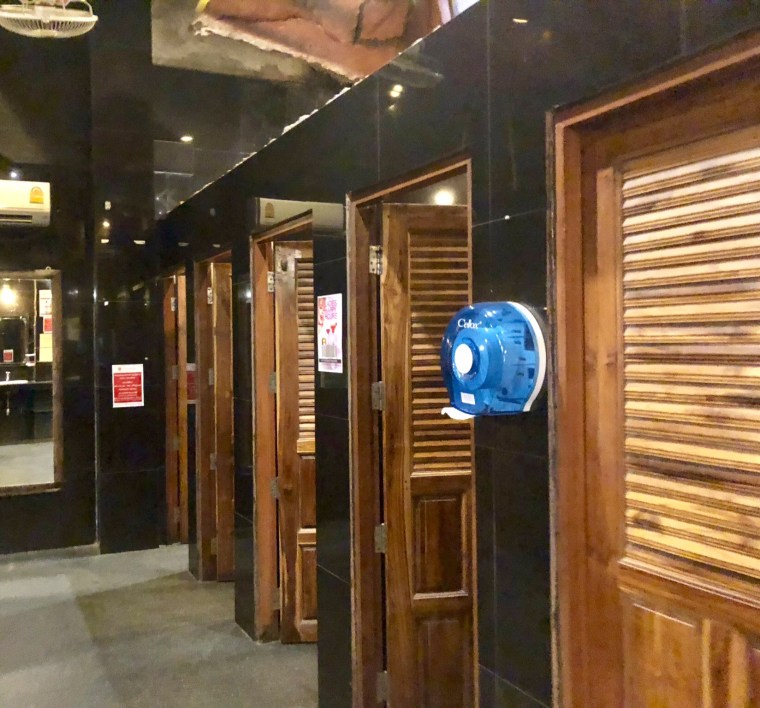 There was no toilet paper in the stalls. You had to remember to get it before going in.