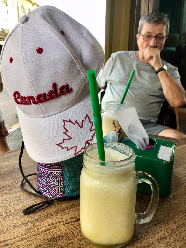 By now it was going up for 3:00 pm and we were tired and hot so decided to head to catch the blue bus back to Phuket. We made it back to the Beach busses transfer point but had no idea where to catch the pink bus back to our hotel. We walked along the street heading back and couldn’t find any bus stop. By now we were near the coffee shop from yesterday so decided to stop in and grab. Smoothie each.