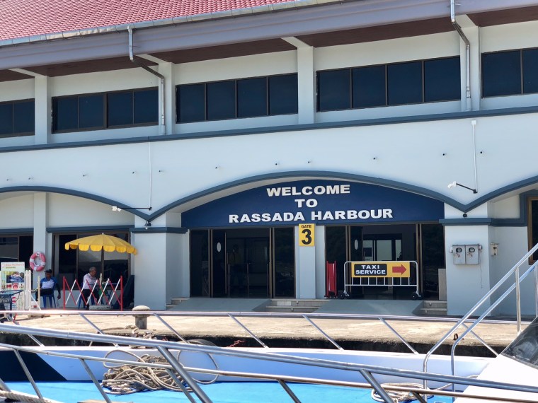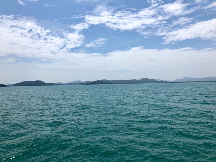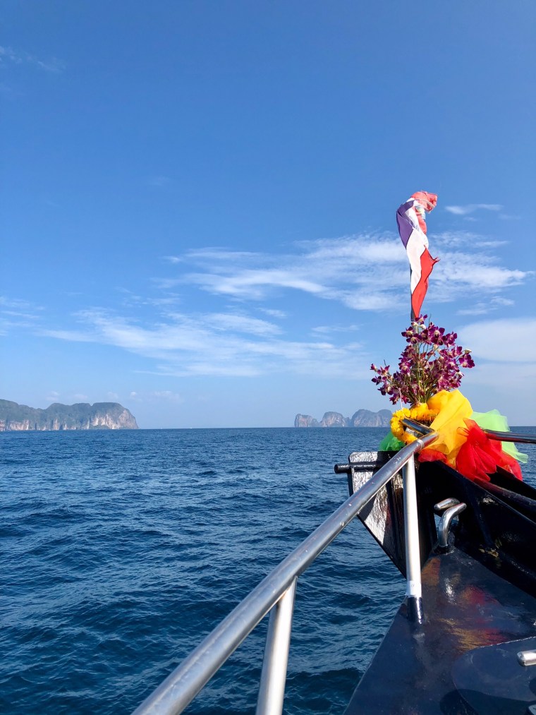 The pier was an absolute madhouse. To get to Koh Phi Phi you have to take a ferry. These are people only ferries and it was big. Four levels from what I could tell. I choose our seats and the guy working on the ferry suggested the other side for a better view. Sounded good so I moved. I looked for a clean window and settled in. The guy then suggested another seat as there was a cement wall and porthole opening outside our window but I said I was good figuring the cement wall, and porthole would disappear once we started moving. I have no idea what I was thinking. Doug also had no idea what I was thinking as the cement wall was attached to the ferry. LOL.