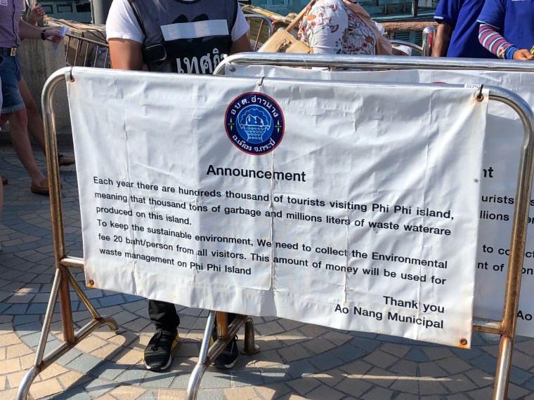 We arrived at Koh Phi Phi around 3:15. We were greeted with this sign and a woman yelling out every 2 seconds that everyone had to pay a 20 baht fee to help keep the island clean. I think this is a great idea since I would imagine that the hundreds if not thousands of tourists that arrive every day create a lot of garbage.