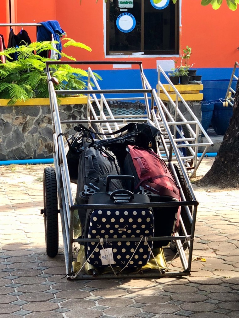 We had been told to look for the Bell Boy with the P.P. Casita sign. Sure enough he was there. Took our luggage to a cart where we waited for a few minutes to see if any others arrived.