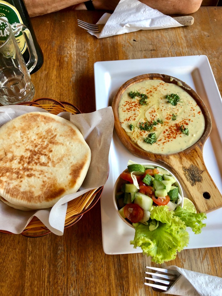 We headed out to get a cold adult beverage and some food. There are many many choices of ‘restaurants’ here. I’ve been wanting hummus and pita bread for a while so when we came across a place with it, we ate there. Don’t think I’d go back. Hummus wasn’t very good.