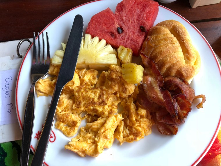 Today we thought we would walk around the island. I really wanted to go to the other side to see the beaches over there and it is possible to walk around the whole island. We headed down for breakfast which is included and I have to say I love that. No searching for food. Breakfast was pretty good but the eggs had a funny taste IMHO. I think it was the margarine or whatever they put in the frypans.