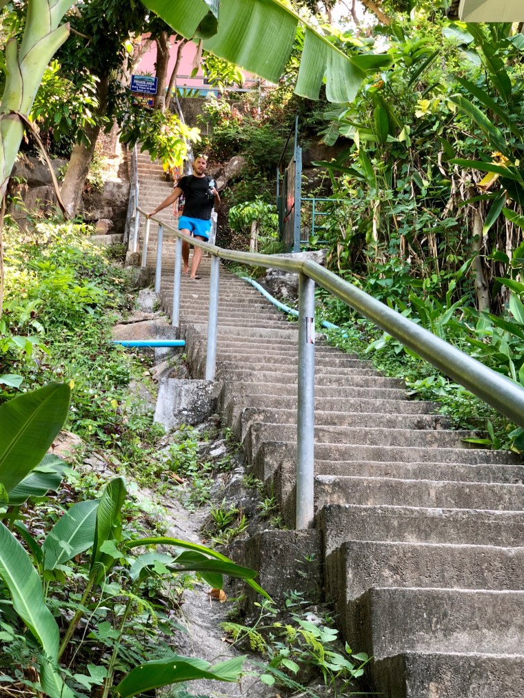 Little did we know! We got to the bottom of the steps and looked up. There must have been a hundred steps. Turned out that was just the beginning of a VERY STEEP climb up.