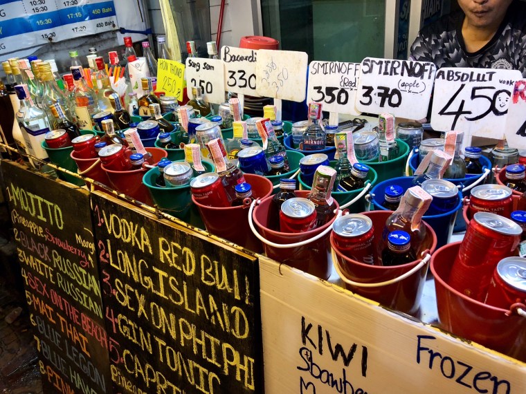 They have these buckets of drinks you can purchase and then you mix your own in it. Everything needed comes in the bucket.