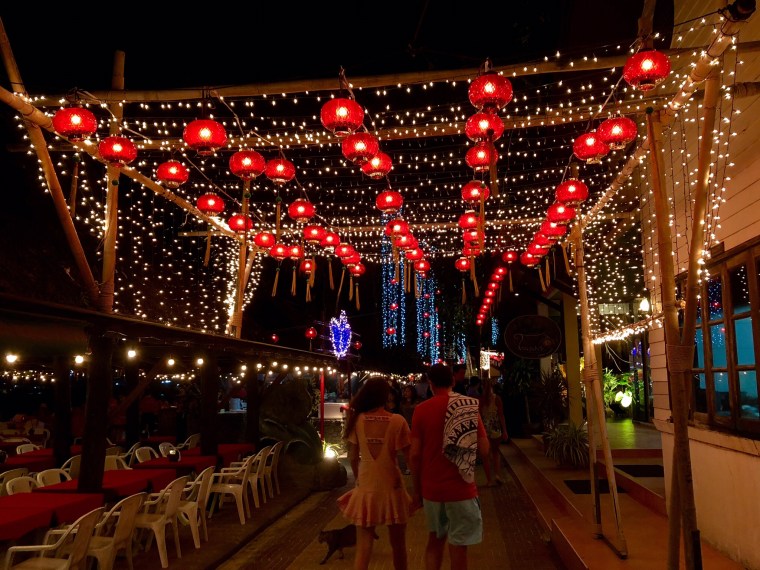 This evening we decided we would eat at a place called Garlic 1992. We had looked at the menu yesterday and it seemed reasonable and good choices. Place is really busy. This island had a fire 6 February 2018 (the day we left Canada) and a few restaurants, hostels and businesses burnt to the ground. This was one of the restaurants that had burned. We knew about the fire before we got here as we had met two guys earlier in our travels who had been staying at the hostel that burned. They were left with only their clothes they were wearing that day. So sad. After seeing the area we are amazed that they were able to contain it in such a small area. Can’t imagine the devastation that could have been.