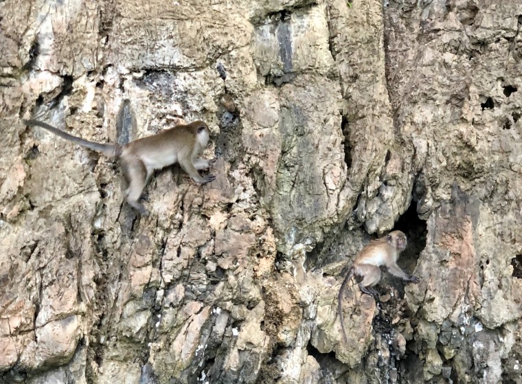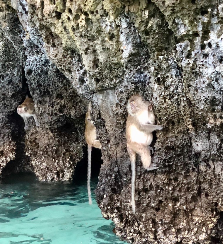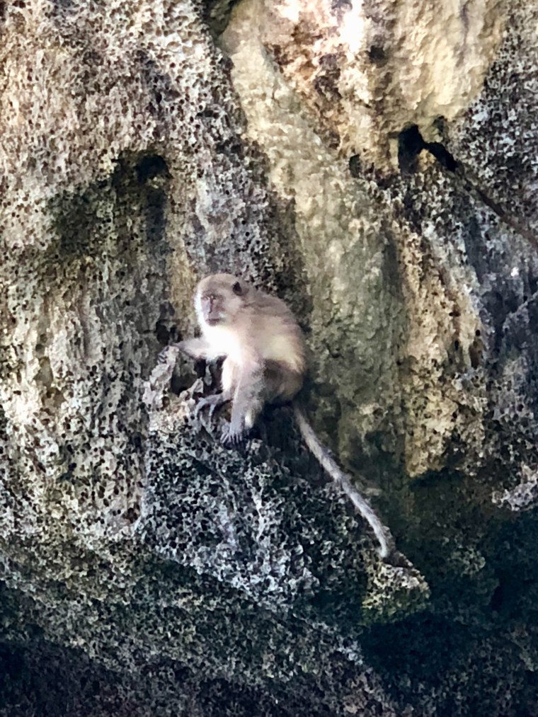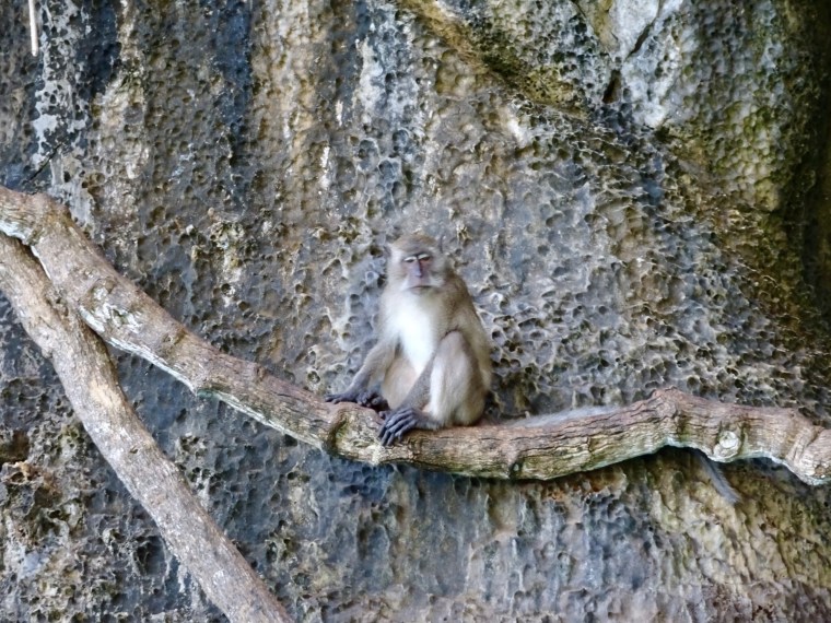 However there were monkeys on the cliffs just outside the beach. Some people off our boat that were in the water were throwing bread to the monkeys. Not a good idea as you are in for a lot of rabies shots if you get bitten by one if these guys. The monkeys can swim.
