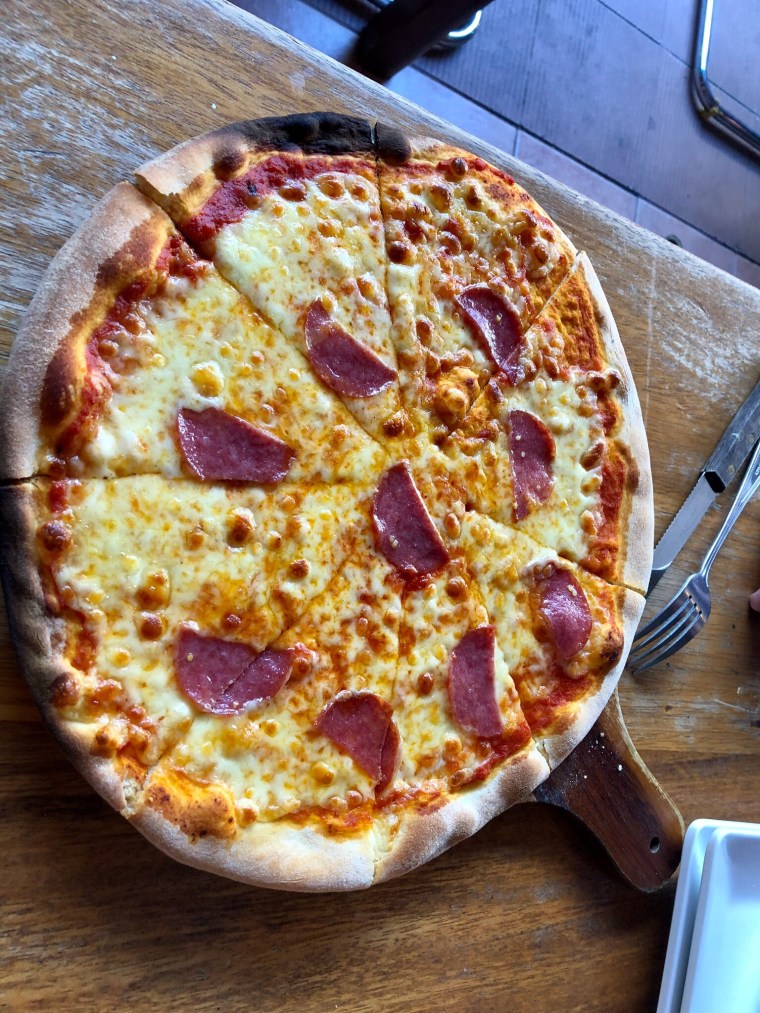 We ordered a pepperoni pizza. It wasn’t the best but it was definitely pretty good. Not like pizza at home. I really miss our pizza place with it’s thick crust pizza. Doug on the other hand loves this thin crust stuff.