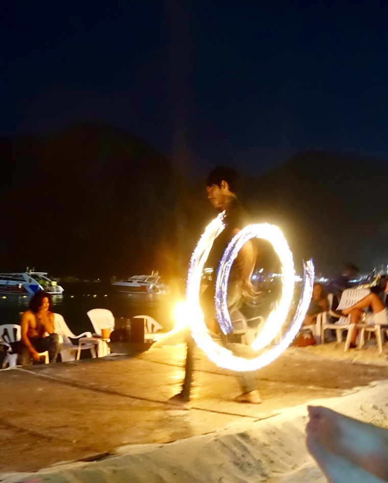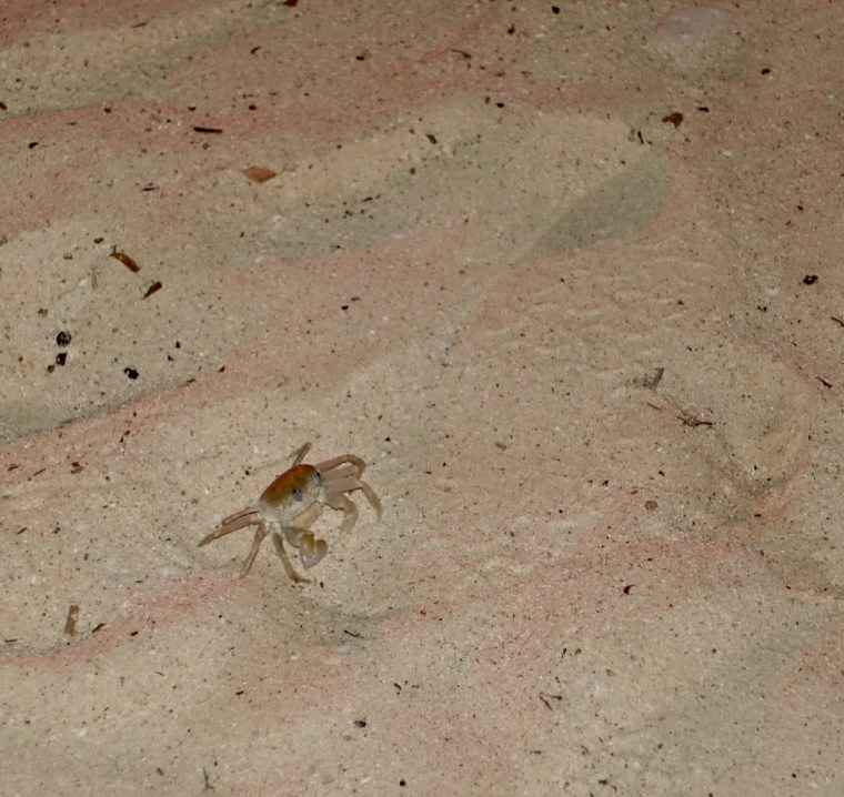 After dinner we headed to the restaurant/bar that was next door to where we ate as they had a fire show starting in an hour. While we were sitting waiting for the show to begin, I saw something move in the sand. Yes I am still very skittish since the spider.