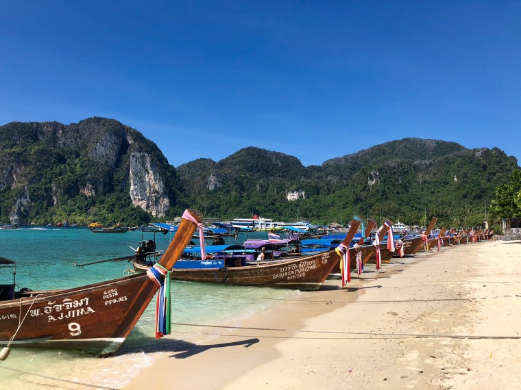 We headed out along the path which goes along the coast. The scenery was just so beautiful that it’s hard not to take lots of photos. Lots of longtail boats waiting for their day to begin.