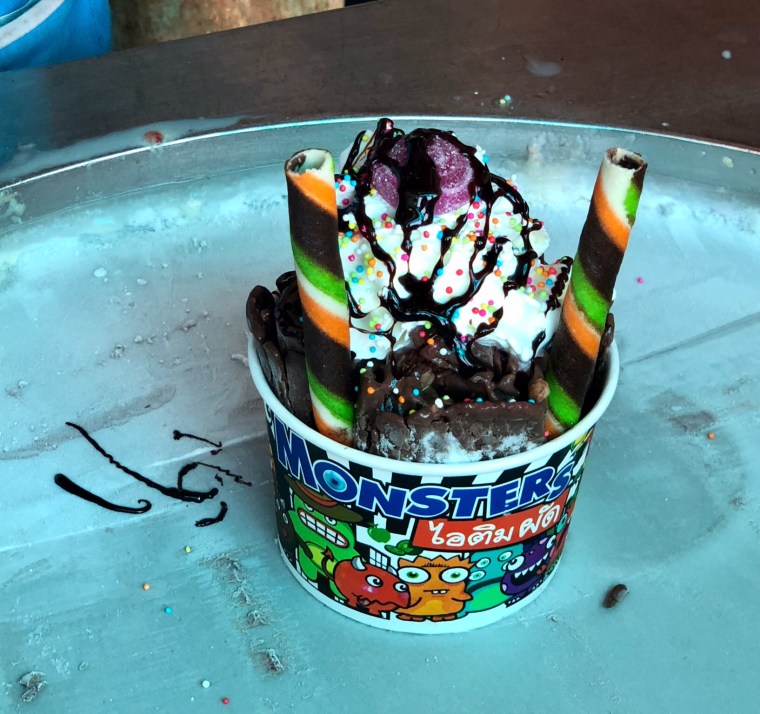 But the smoothies apparently weren’t enough and we stopped for ice cream. They make the ice cream in front of you. Ice cream rolls.