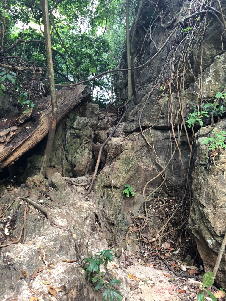 When we got to the end we saw a couple of people heading into the trees area. Turned out there was a ‘path’ there. We followed and it took us to the edge of caves.