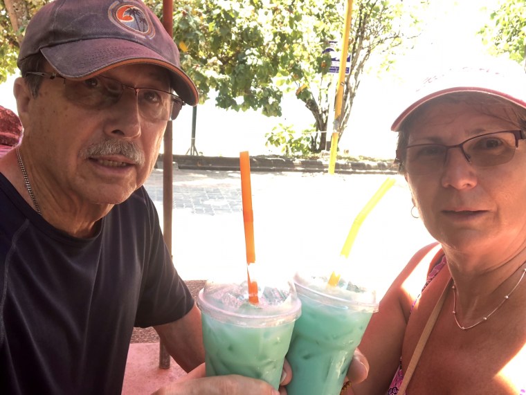 Since tonight was our last night here I wanted to see the sunset. We decided to walk to my new favourite drink place to eat dinner and watch the sun set. May of had another Blue Hawaii!