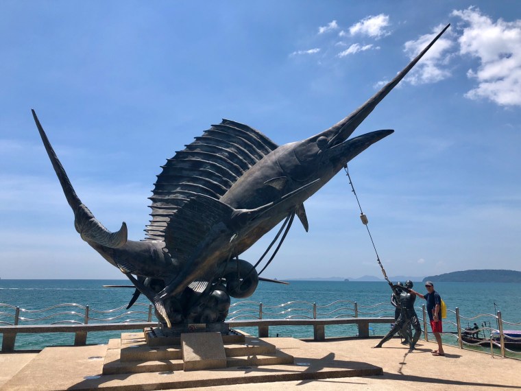 Today was going to be another beach exploration day. This area is famous for a beach called Railay Beach. To get there we had to take a longboat from AoNang beach. Return tickets were 200 bht ($8 Cdn) each and it takes between 10 and 15 minutes to get there.
