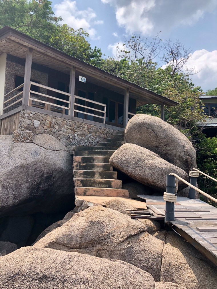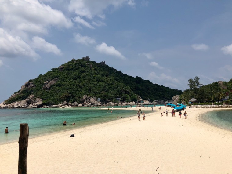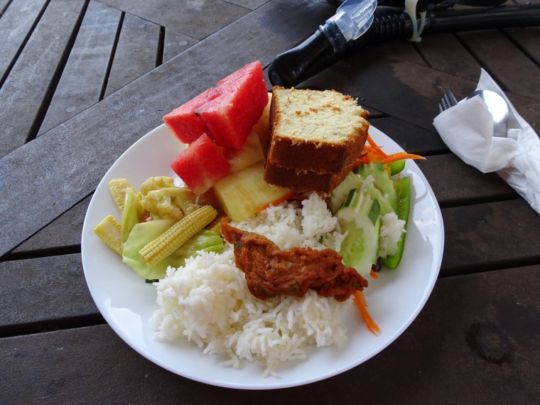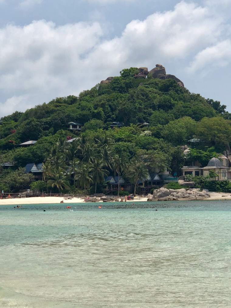 Once everyone was back onboard we headed over to the next stop, Koh Phangan. I have seen Paden’s pictures and internet pictures of this place and just thought it was breathtaking. Let’s just say some things are better in pictures. I was a little disillusioned when seeing it in person. First up was the lunch that was included. Not much to say about that……not much for me to eat either. I had mainly rice and fruit. The plain cake slices had a slight hint of banana and were good. Not sure what the brown thing on top was, even after I took a bite. I did not finish it and also noticed a lot of other people didn’t.