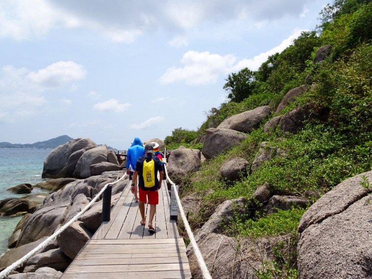 We had 6 Israeli men in our group and they were given the area in the front of the boat to sit. Out in the full sun but the best views. We got a seat right behind the Captain (driver) of the boat. A family of 3 with a young child were given seats at the very back of the boat again in the full sun. The others were given seats here and there. All seated and we were off! This was definitely a high speed boat as we seemed to fly across the water to our first stop, snorkeling at Koh Tao. Even at the high speeds it was a good hour or more to here.