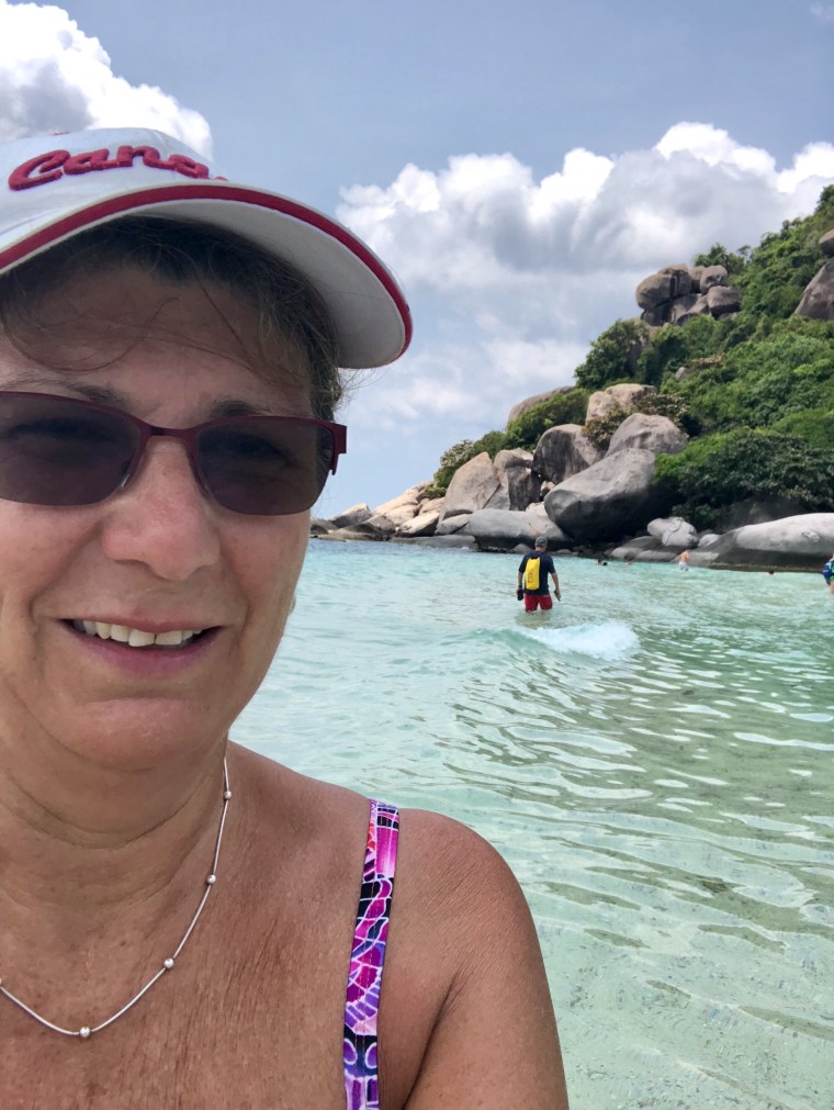 I snorkeled for about 30 minutes and climbed back onboard. Apparently we had another 30 minutes there. Guess I missed a little excitement when I was snorkeling as Doug was saying that they had to help one of the Israeli men out of the water and back onto the boat as he was vomiting. Guess they had been out partying the night before and this guy must have overdone it. He spent the next hour up at the front of the boat vomiting. His friends had to keep coming to get him new vomit bags. Good thing I wasn’t sitting up there. I have a very weak stomach.