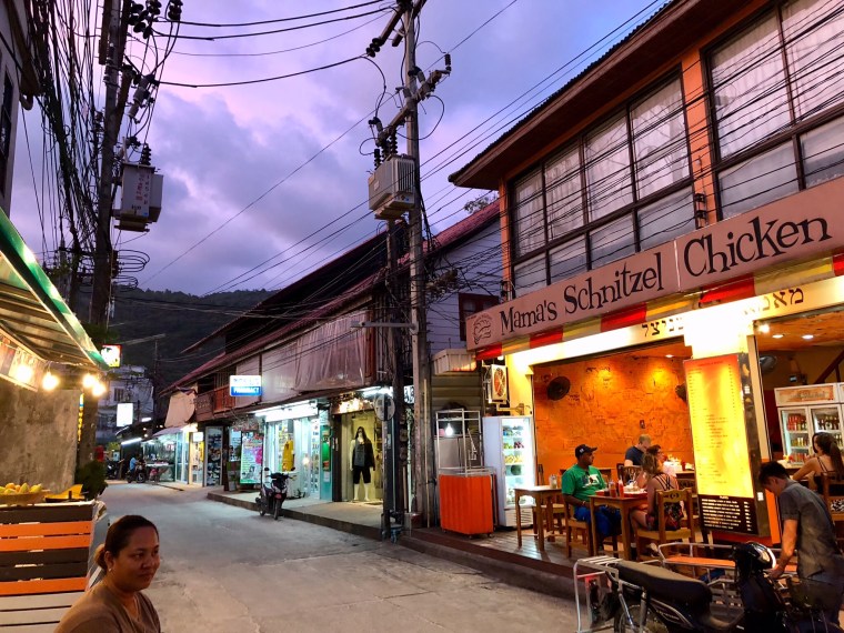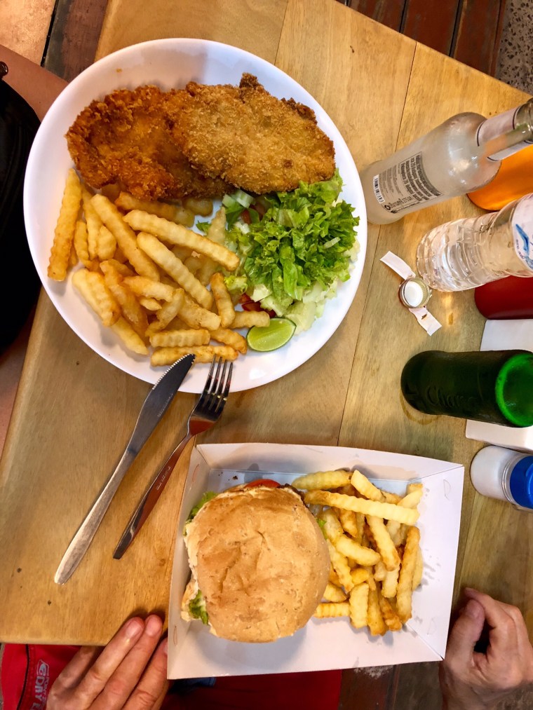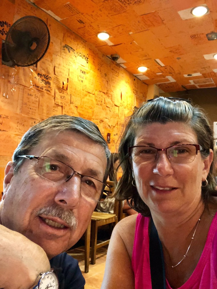 We headed back down to the beach area where there were lots of restaurants. We ended up at Mama’s Schnitzel Chicken. I had the Chicken Schnitzel & Chips & Israel Salad. Doug had Cheeseburger w/chips. Doug’s was good. Mine was AMAZING! Two large schnitzels and I ate them both!