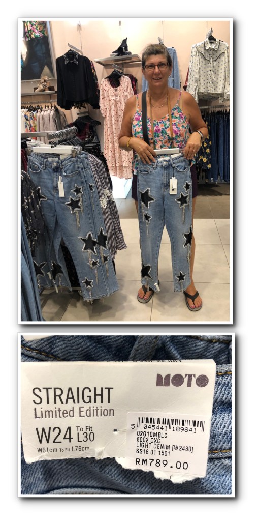 Found some really nice jeans at a bargain price….NOT! 789 MYR RM (Malaysian Ringgit) = Cdn $248.61 That is right! For one pair of jeans