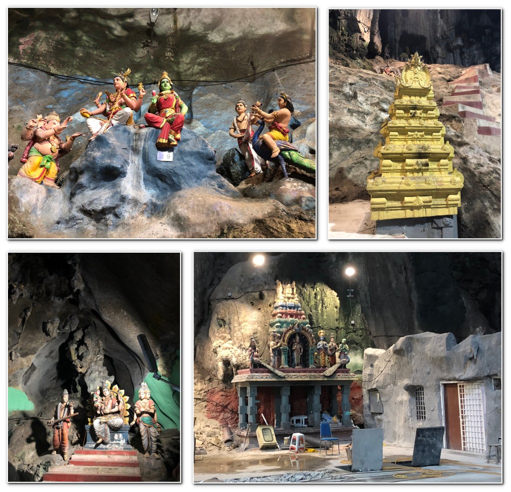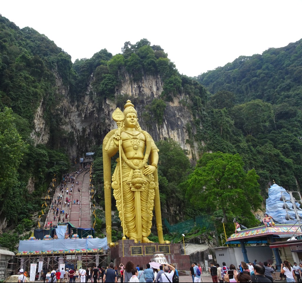A very short walk from the station and we were there. Quite a spectacular sight to see, I might say, even with all the maintenance scaffolding around. The staircase up to the entrance of the largest cave, Cathedral Cave aka Temple Cave and a 140 foot tall gold painted statue of Lord Murugan.