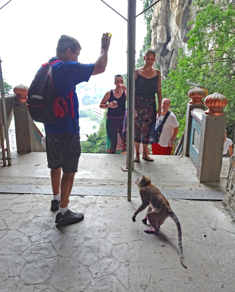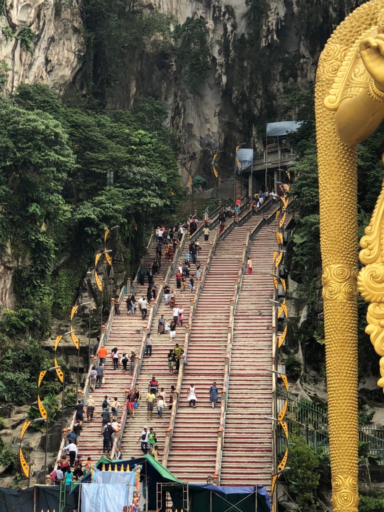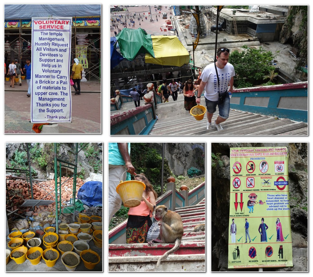 At the bottom of the stairs, there is a sign asking visitors to help out by carrying a brick or pail of sand to the top. I don’t think they were talking about me. We were still trying to figure out whether or not we, or I, would even make it up the 272 steps to the Hindu Shrine inside the huge cave in the mountain. We had to do the stairs in segments and take a rest in between. I have no idea how some of these people managed to get up here.