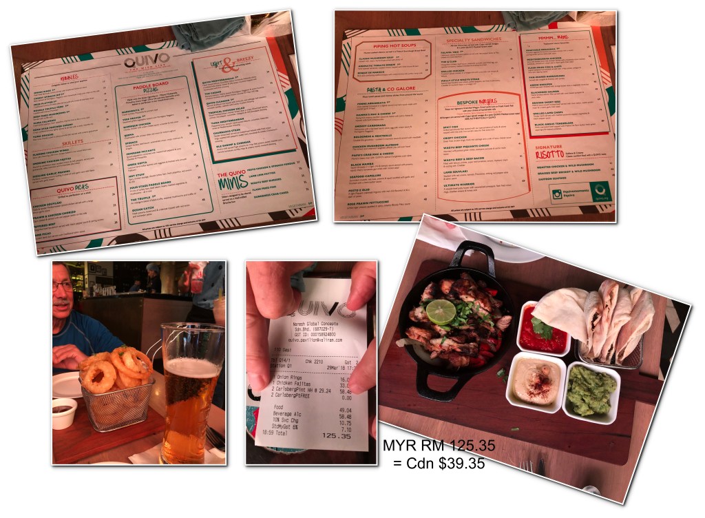 We decided to eat at Quivo, a restaurant in the Pavilion Mall, that I had seen people eating scrumptious looking onion rings at. We ordered a couple pints of draft and onion rings, to be followed by fajitas, that we shared. Onions rings looked a lot better than they tasted, but were still good. Fajitas were average, but what did I really expect?