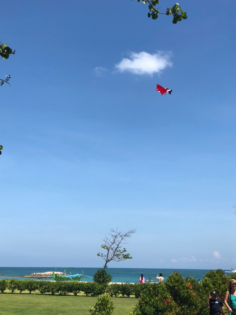 Nothing planned for today. We were going to walk back to the downtown area of Kuta and see if we could get some money. Walked along the water and saw these people flying a kite. Perfect weather for kite flying.