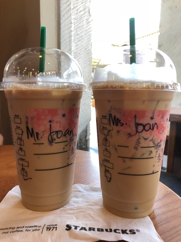 Tried the bank machines from the other day and Doug was able to get Cdn $50 from one machine. After that it appeared that his card had stopped working also. With our whopping $50 in hand we stopped in Starbucks for a couple of cold ones. Had to laugh at how they labeled the coffees. Mr Joan and Mrs Joan.