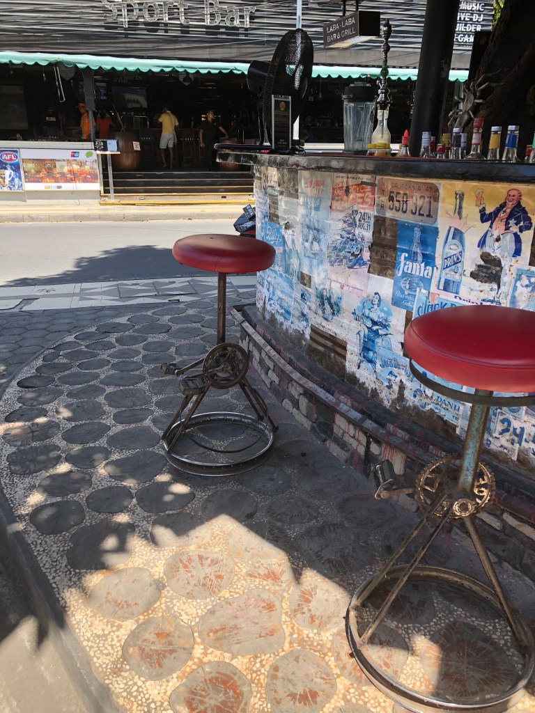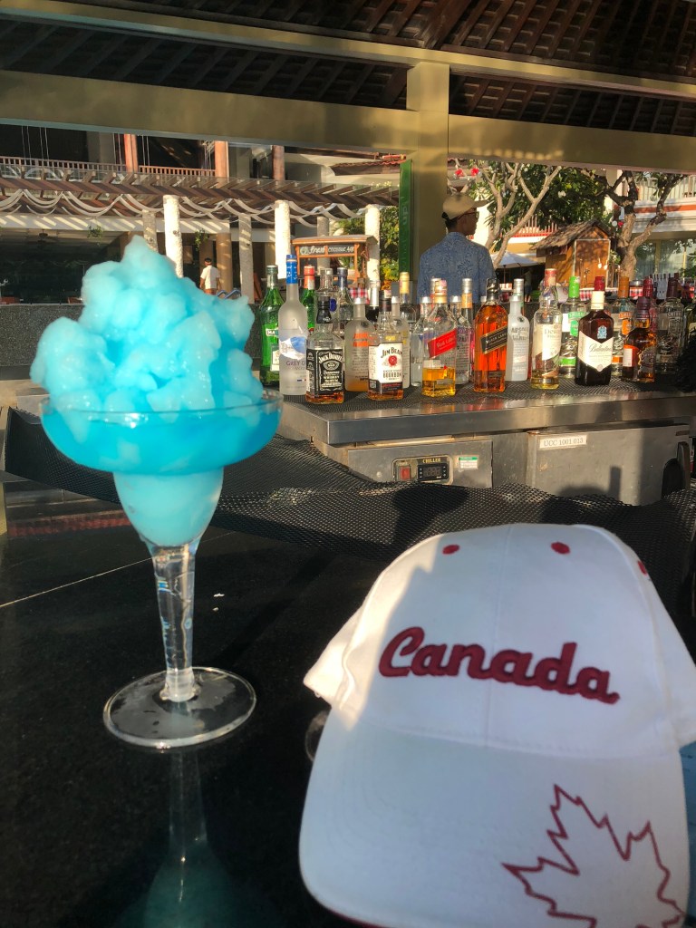 We had a few drinks or more, and a delicious Crispy Chicken Wrap. The same meal we had had the other day at the pool bar. It really was good. Good thing we could charge it all to our room and pay by VISA when we were going to check out.