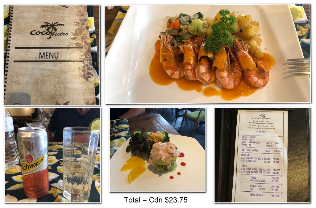 Couldn’t go wrong with the price of a large Bintang here. With tax and tip it was IDR Rp 35,200 = Cdn $3.10