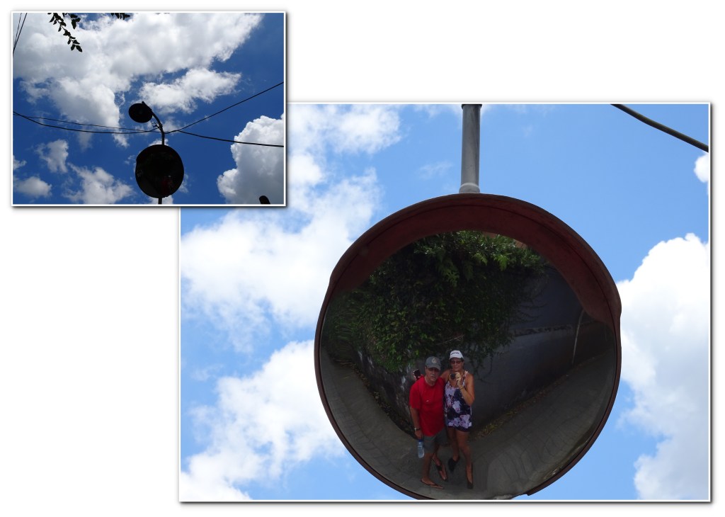 Tried my hand at another ‘trick’ photo as they had these mirrors on the sharp corners of the narrow road. It may or may not have taken me a few shots to get us.