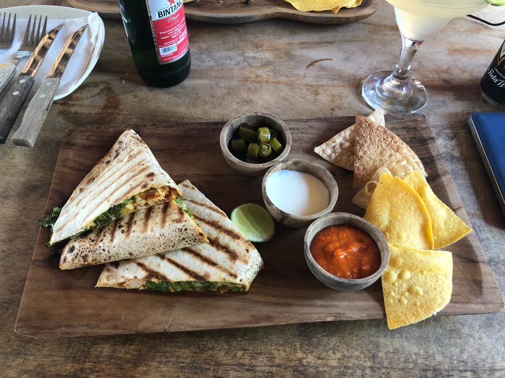 So my tostados were really good, but I am still not sure how you are supposed to eat them, since they are on a crunchy shell and can’t be folded. I managed somehow though.
