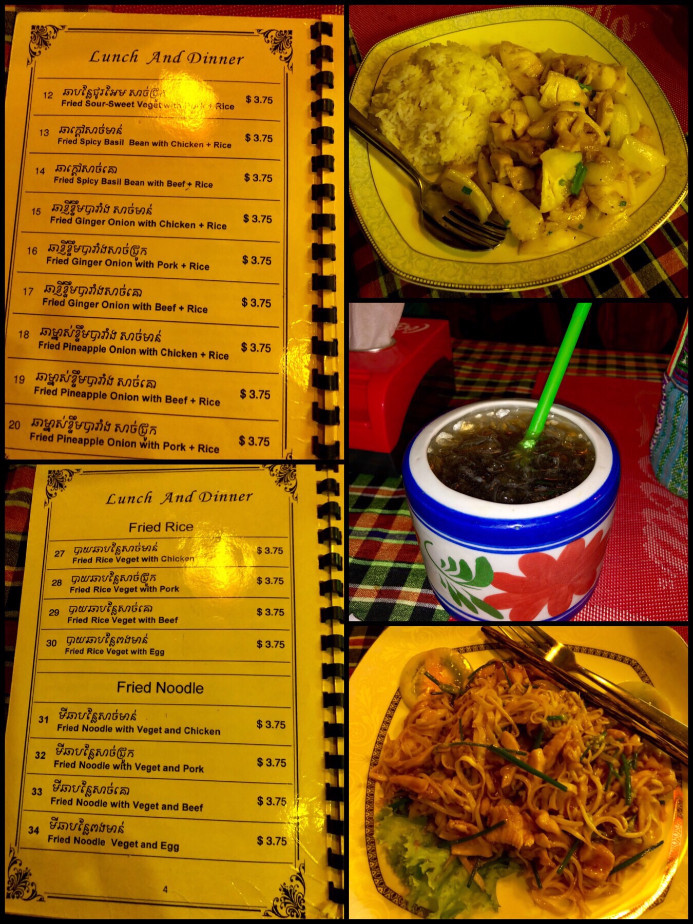 When we got back to town we treated our Tuk-Tuk driver, Peter to dinner at the Nary Kitchen. He picked this restaurant and he really recommended it. Funny thing was we had looked at it this afternoon for lunch but thought it was a cooking school. Turns out it is both. Doug had fried rice, vegetables and chicken. Peter and I both ordered the noodles with vegetables and chicken. Food was good. I also ordered a Long Island Iced Tea. Can’t say that drinks were their specialty.