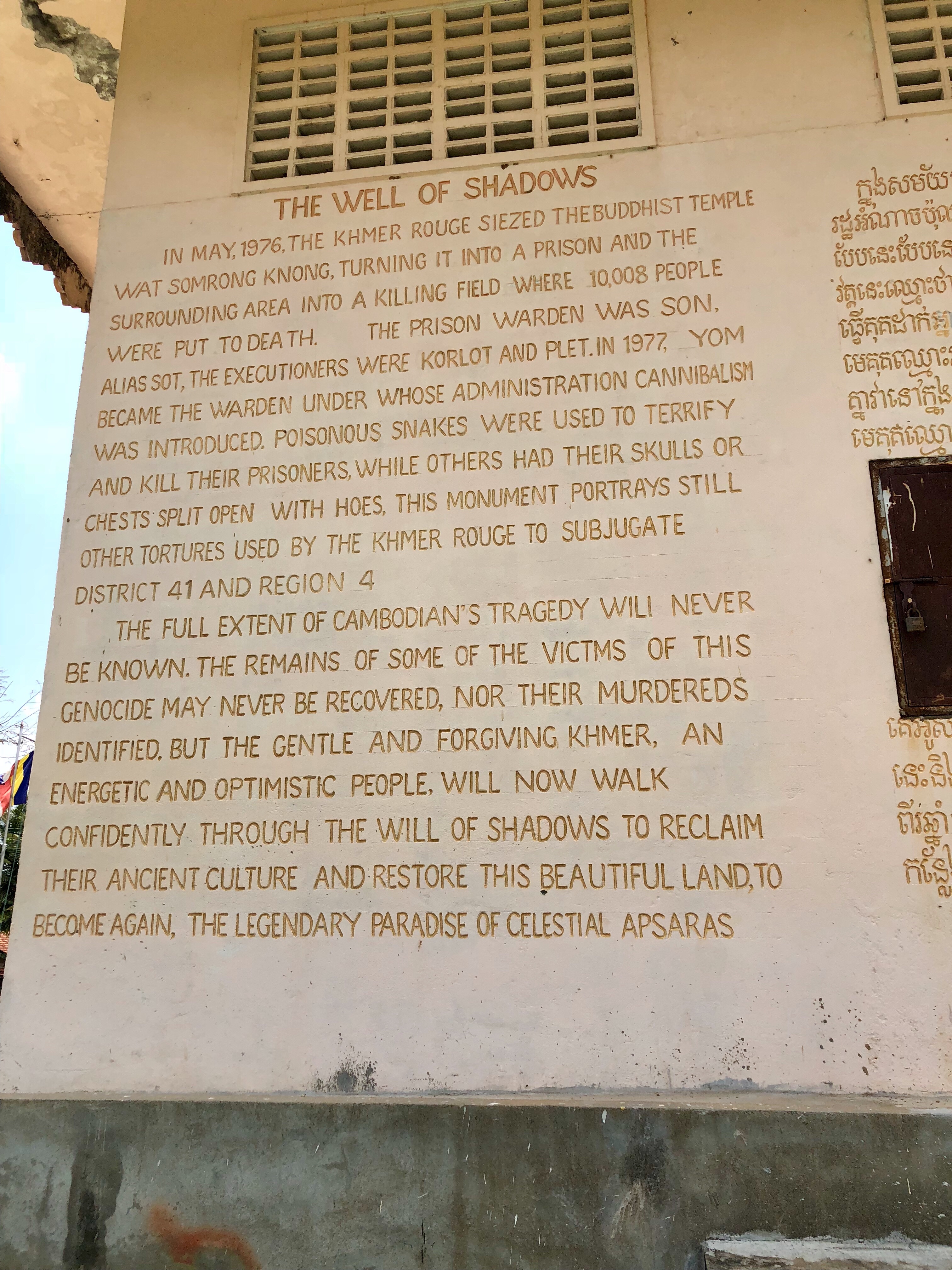 Next up we headed to Wat Samrong Knong (Killing Fields). This is a really depressing place. They were referred to as killing wells but are actually small lakes now.