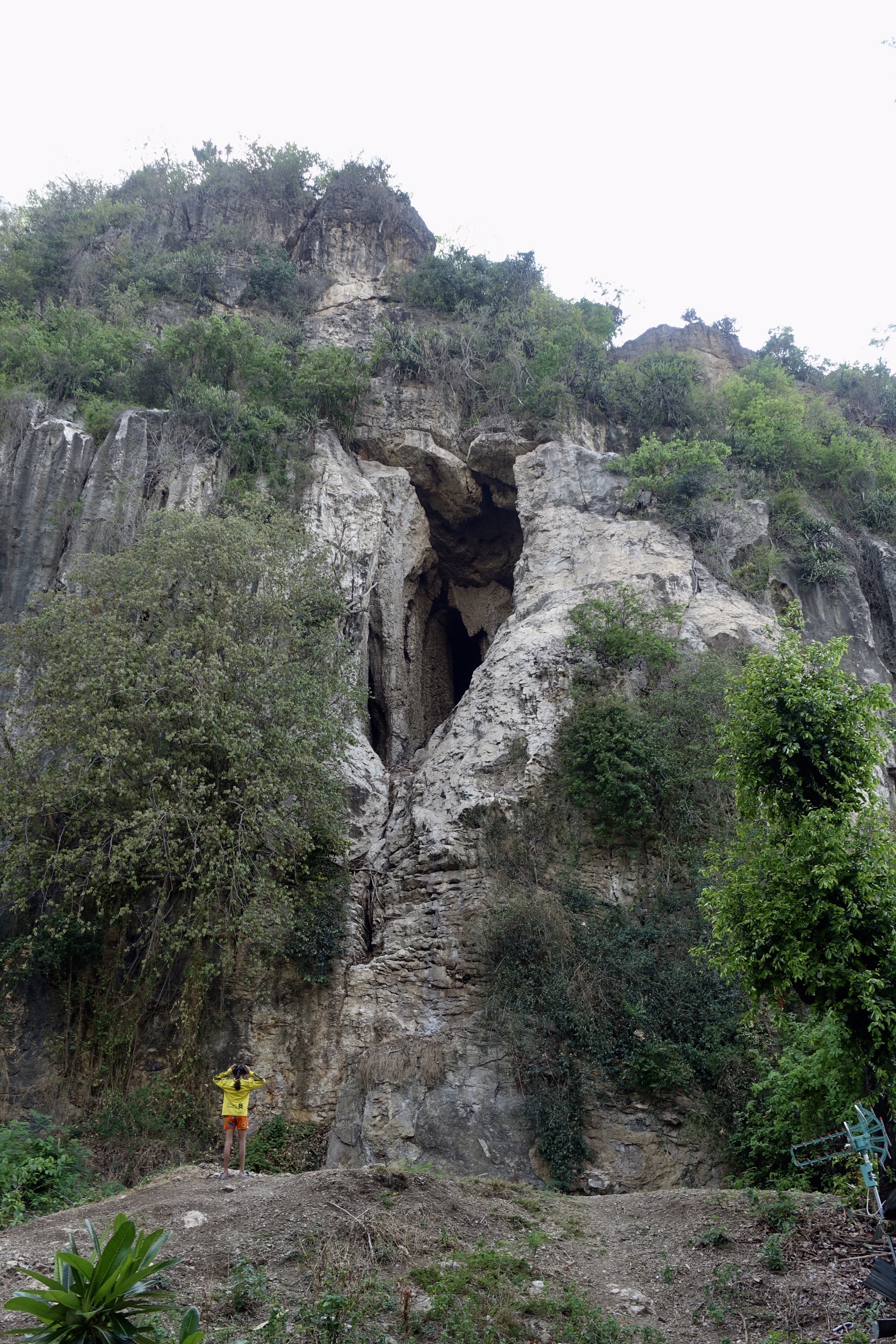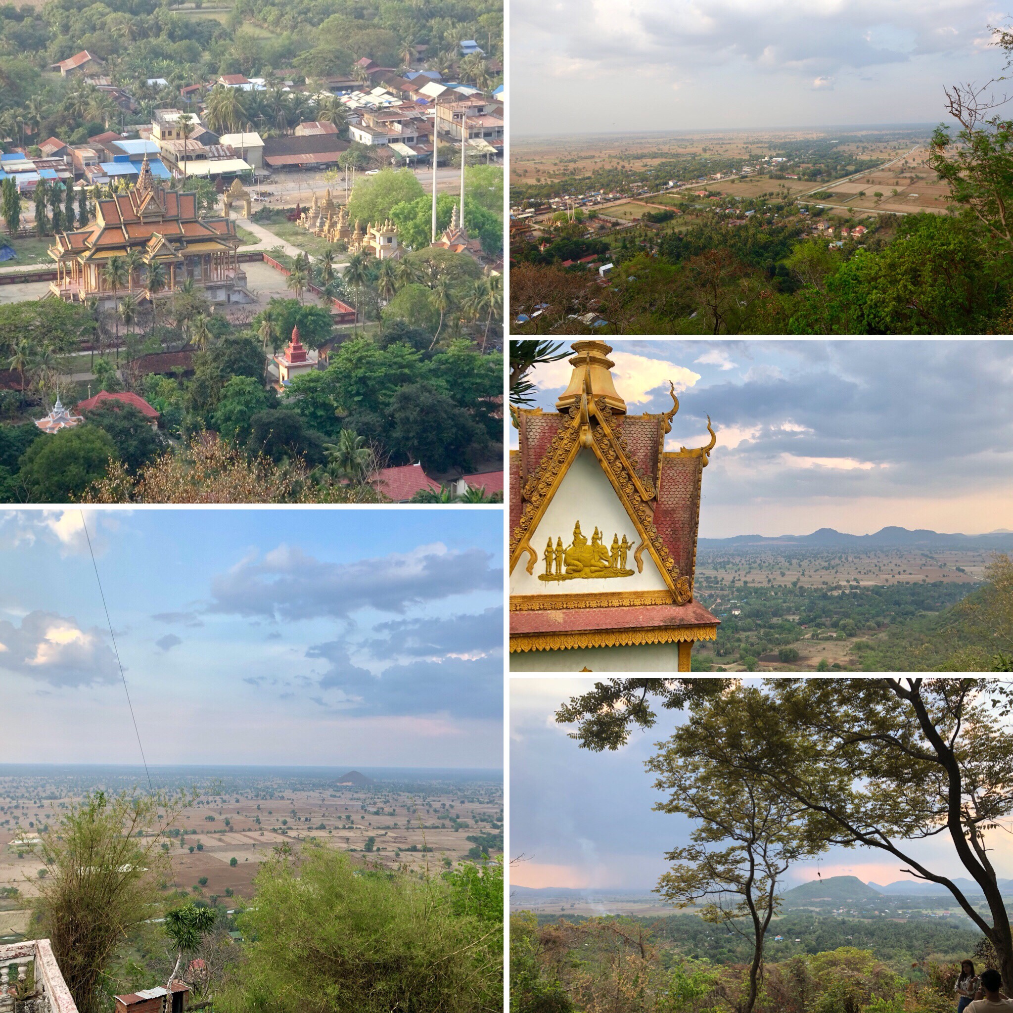 We got back to our hotel just in time for our 3:30 Tuk-Tuk pickup to go to Phnom Sampov Killing caves and Bat caves. It was about 12 km, but a great ride. We just love traveling in Tuk-Tuks. Peter parked his Tuk-Tuk, negotiated a price and we transferred to a pickup truck that would take us the rest of the way up the mountain. We were given the option to sit inside the cab or in the open back. Living on the wild side we chose to sit in the back. They had to put out a step stool and help me up into the back. Wasn’t an easy task! This road was very steep and twisty. Really had to hang on. The pickup stopped half way up and out we climbed, as he headed back down to get more people. This guy was doing a great business.