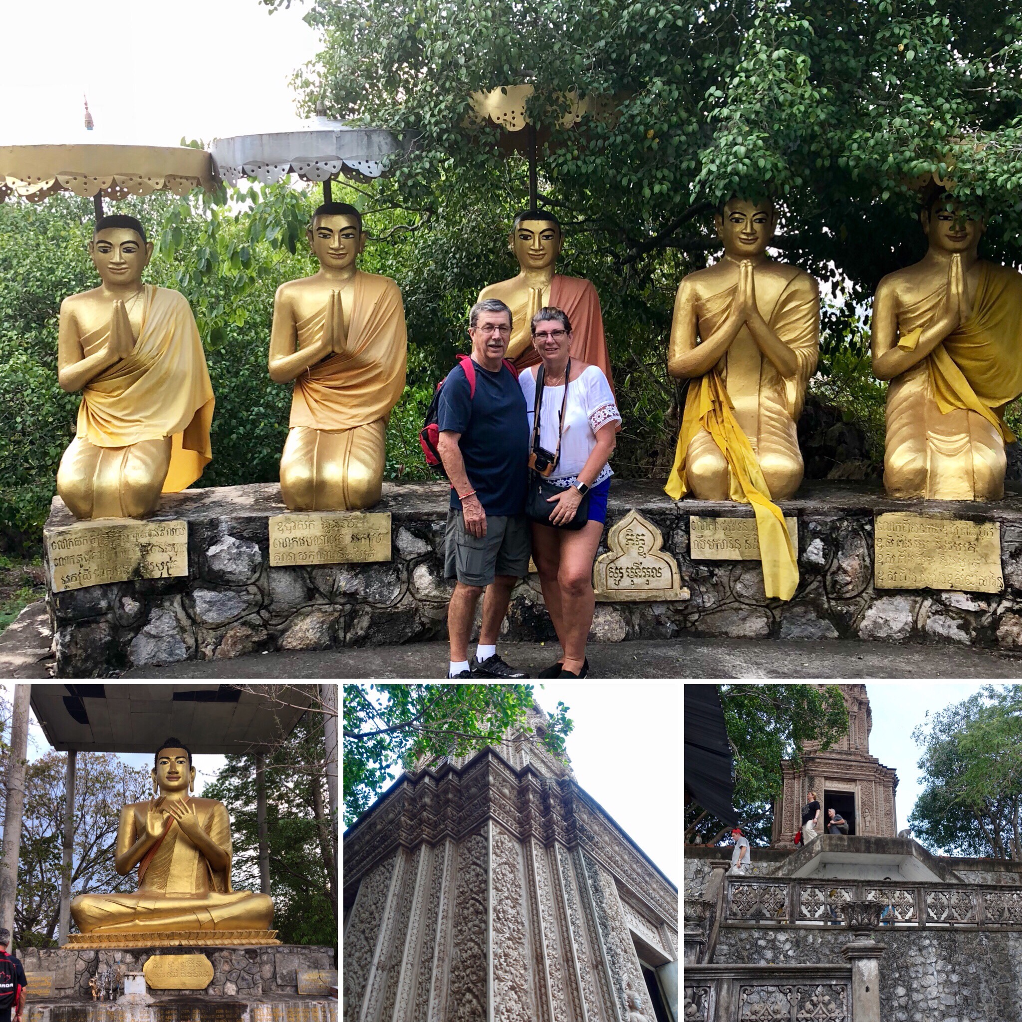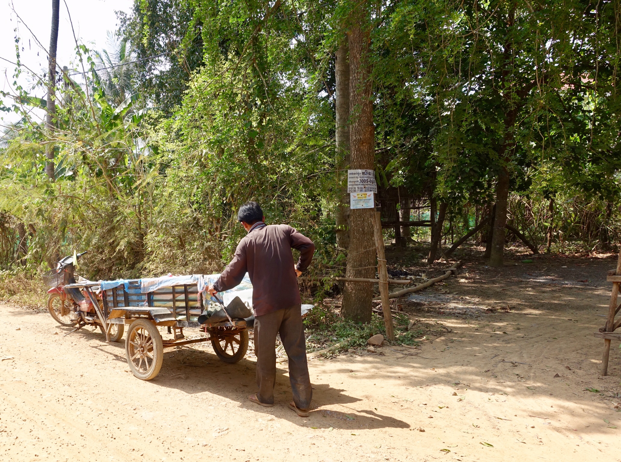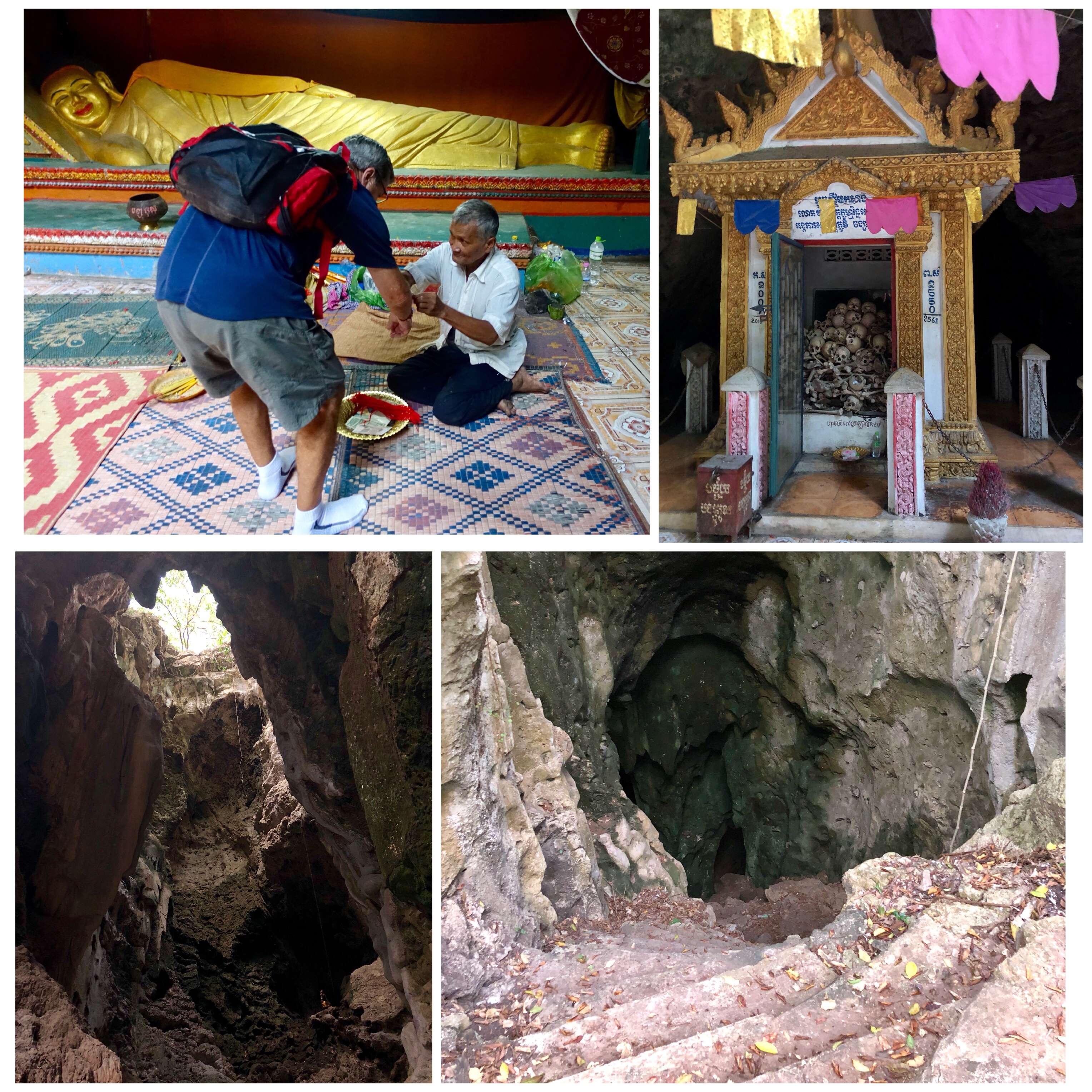 We got back to our hotel just in time for our 3:30 Tuk-Tuk pickup to go to Phnom Sampov Killing caves and Bat caves. It was about 12 km, but a great ride. We just love traveling in Tuk-Tuks. Peter parked his Tuk-Tuk, negotiated a price and we transferred to a pickup truck that would take us the rest of the way up the mountain. We were given the option to sit inside the cab or in the open back. Living on the wild side we chose to sit in the back. They had to put out a step stool and help me up into the back. Wasn’t an easy task! This road was very steep and twisty. Really had to hang on. The pickup stopped half way up and out we climbed, as he headed back down to get more people. This guy was doing a great business.