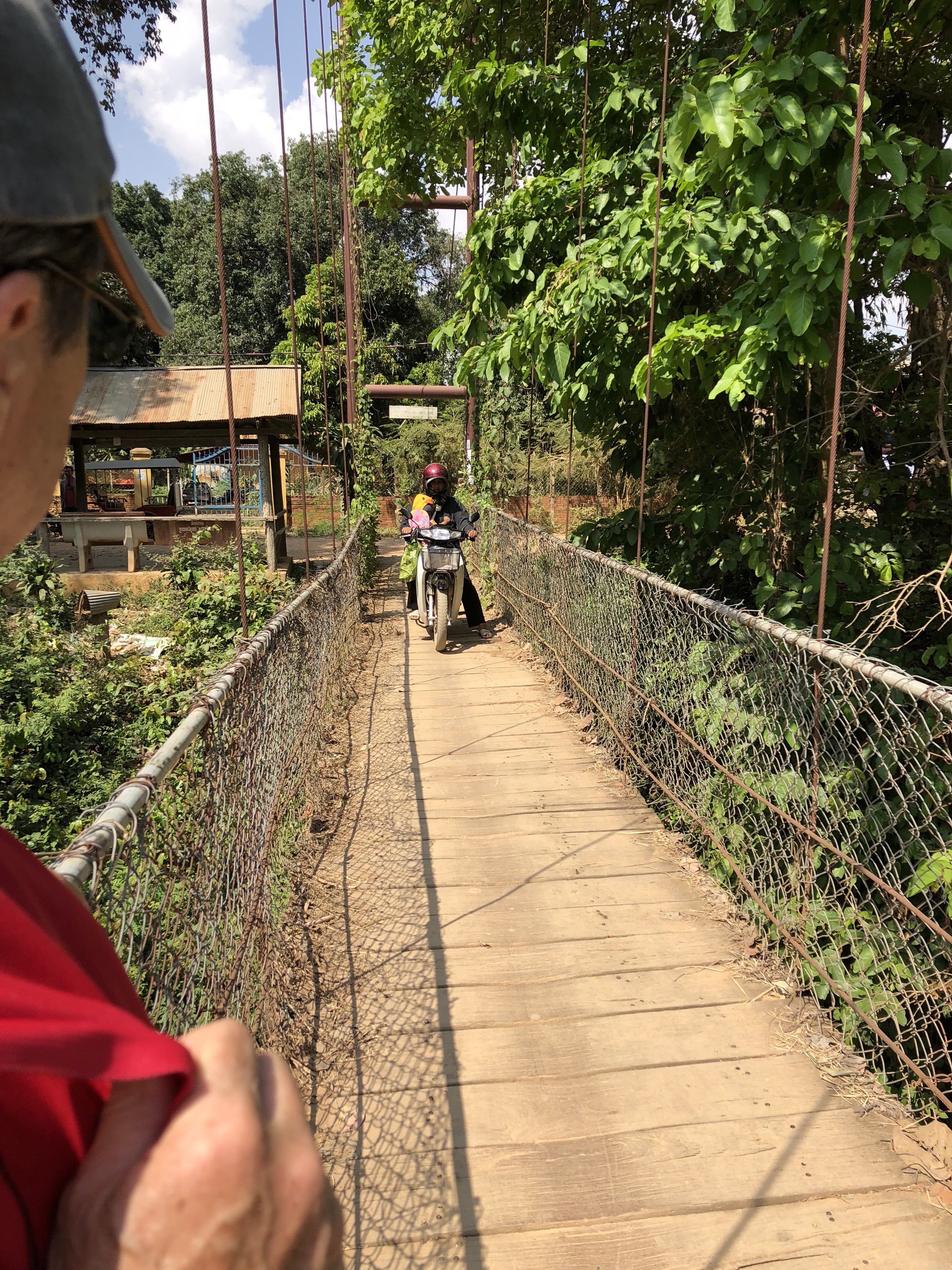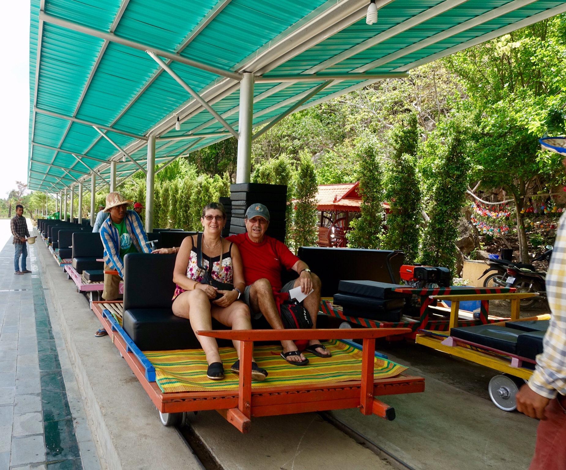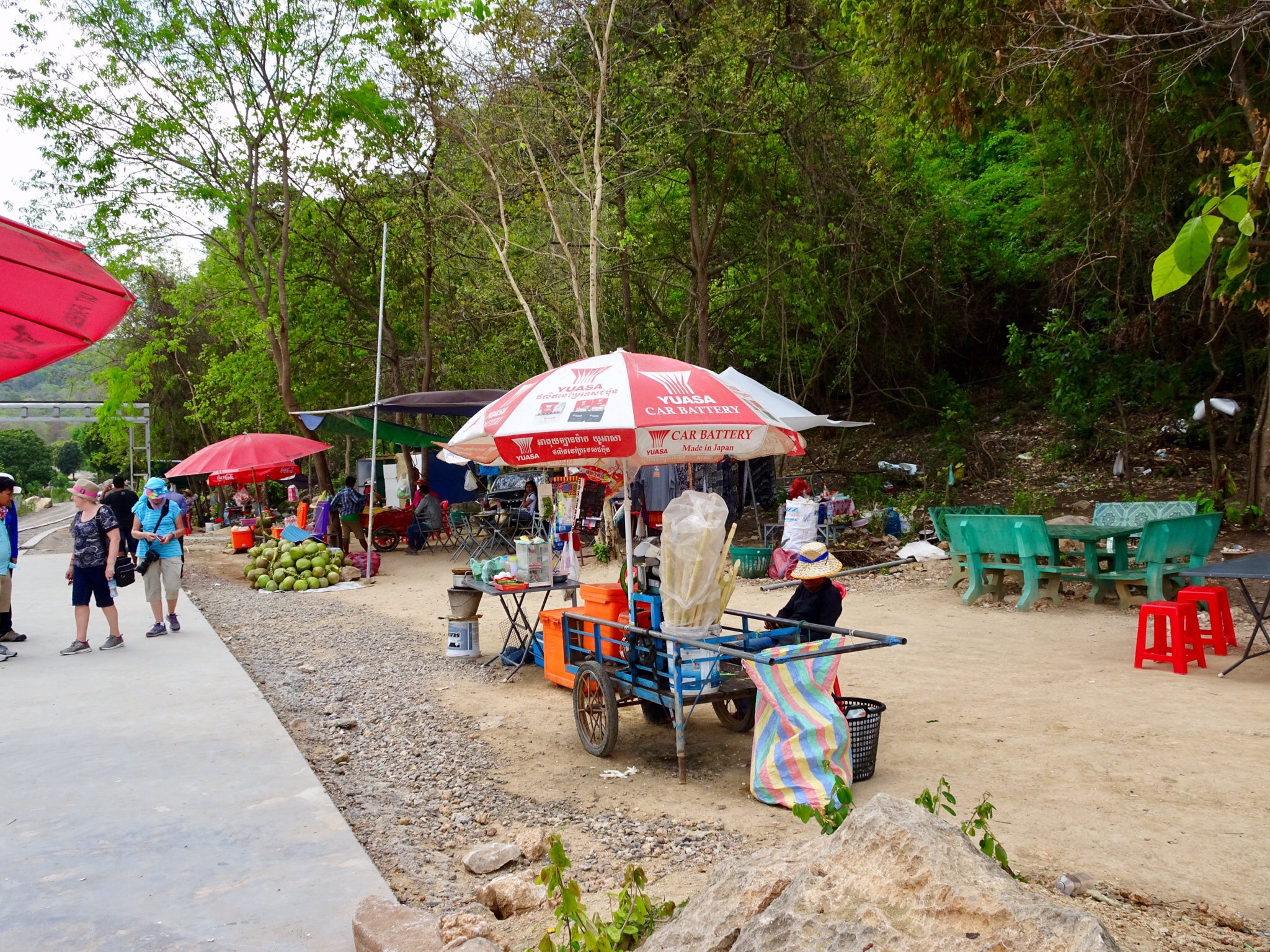 We got back to our hotel just in time for our 3:30 Tuk-Tuk pickup to go to Phnom Sampov Killing caves and Bat caves. It was about 12 km, but a great ride. We just love traveling in Tuk-Tuks. Peter parked his Tuk-Tuk, negotiated a price and we transferred to a pickup truck that would take us the rest of the way up the mountain. We were given the option to sit inside the cab or in the open back. Living on the wild side we chose to sit in the back. They had to put out a step stool and help me up into the back. Wasn’t an easy task! This road was very steep and twisty. Really had to hang on. The pickup stopped half way up and out we climbed, as he headed back down to get more people. This guy was doing a great business.