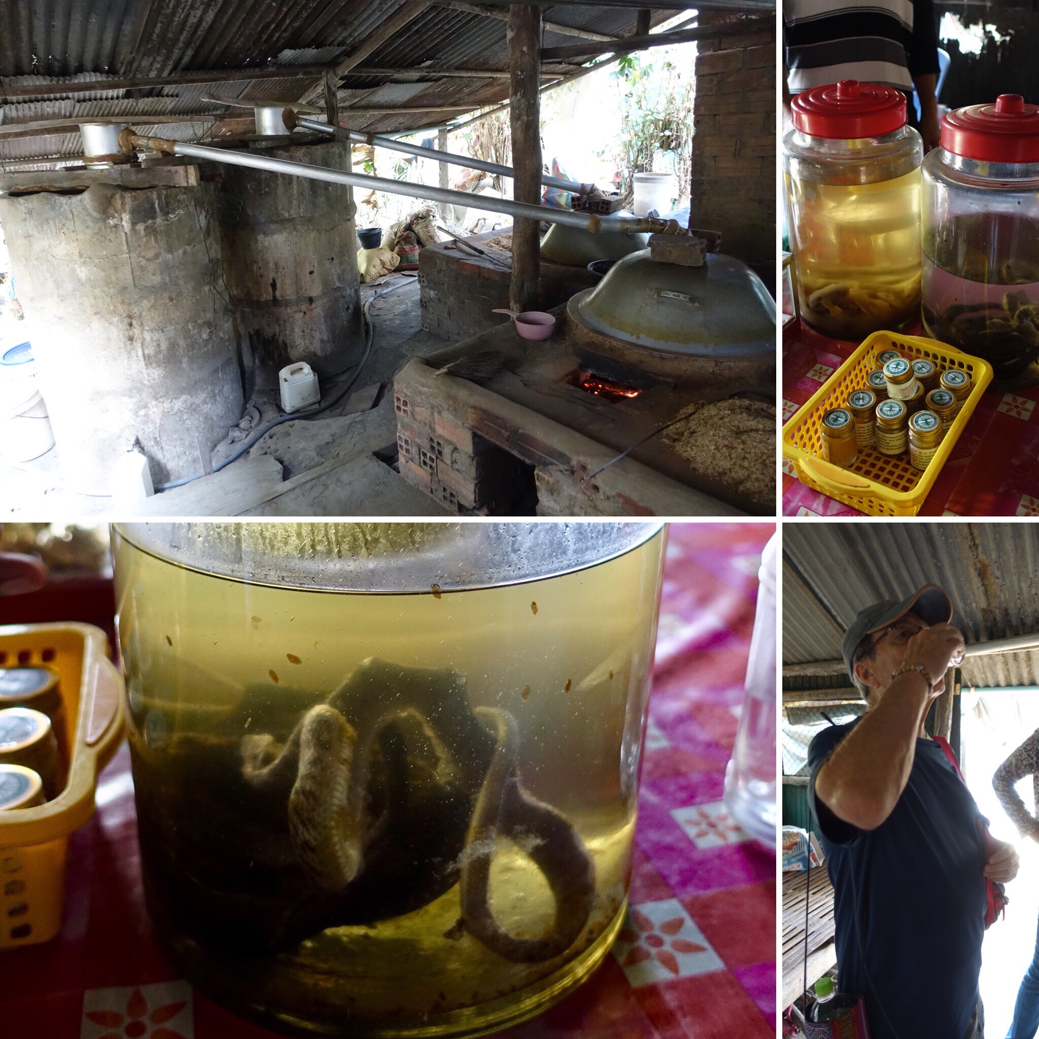 Next up was the rice wine ‘factory’. A shack on the side of the road where they made assorted rice wines. They explained to us how they make the wine. There was a regular rice wine, a silkworm wine and a snake rice wine. Doug sampled them all, including the cobra wine. I tried none of them.
